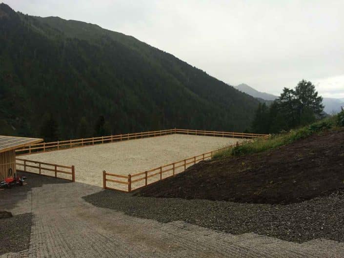 Inmitten der Bergwelt Tirols hat sich Fam. Leichtfried mit Hilfe der Ecoraster ihre Paddocks, Wege & den Reitplatz in extremer Hanglage befestigt.